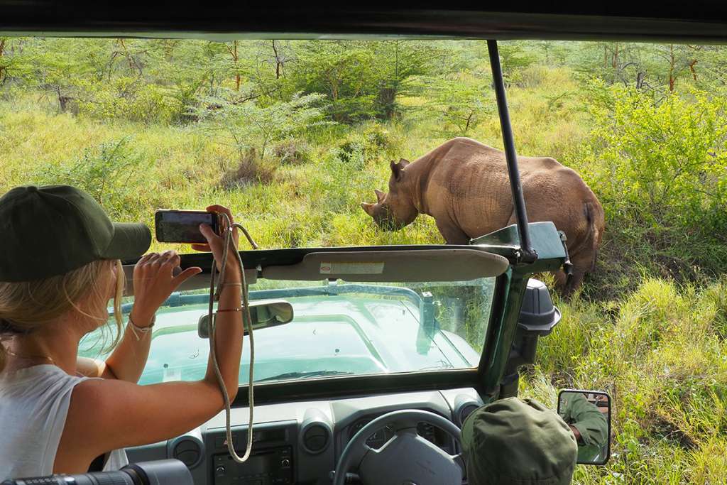 (when in season) or the rare black rhino. Following lunch, visit a Maasai village to